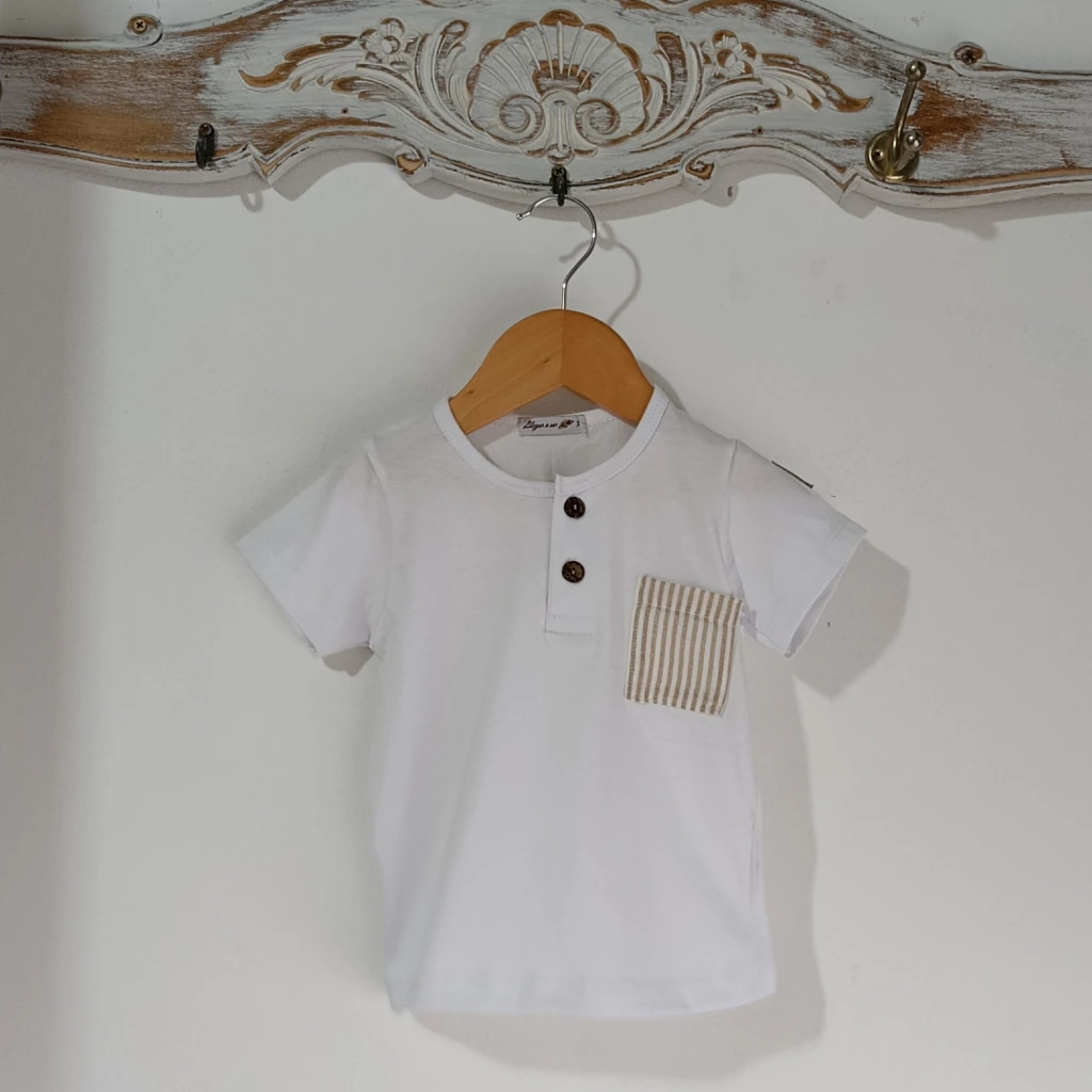 Remera bebe Botones y bolsillo rayado beige